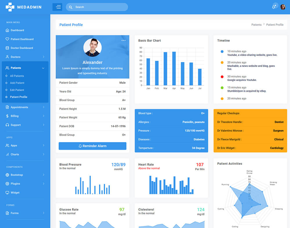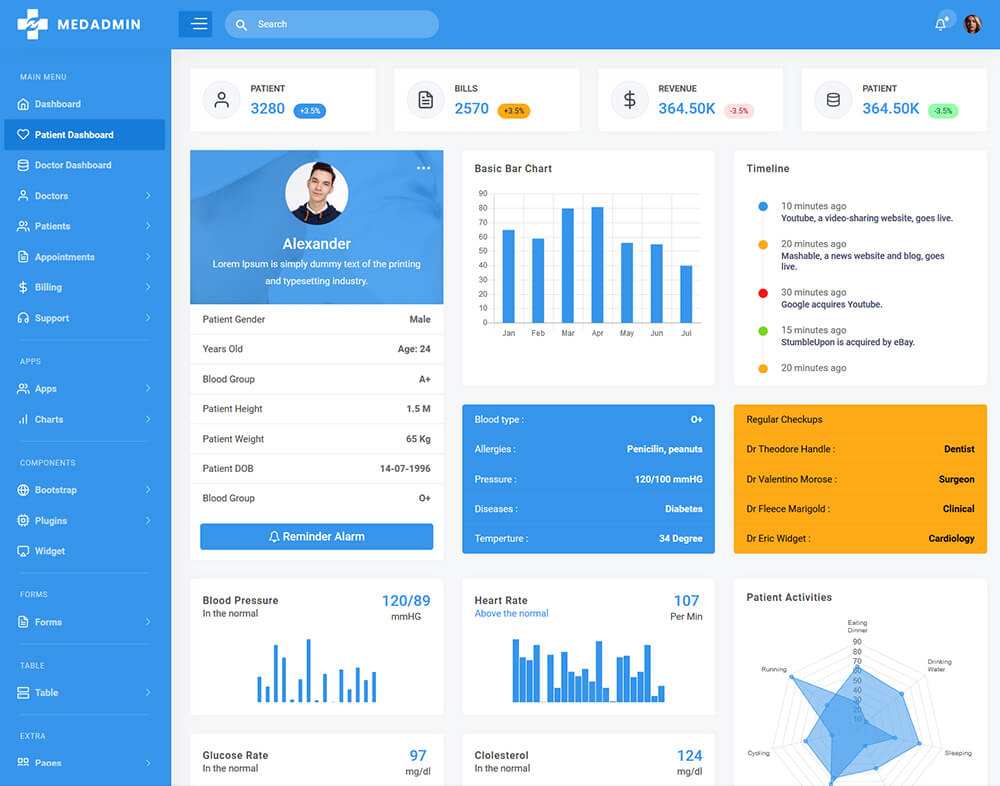 My client was in need of a website with a deadline of 4 days. It was perfect to find MediCo., a lightweight template where you have all the pages and features you may need already designed in the best possible way.